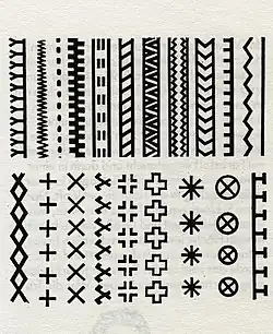 Der Umfang der Tätowierungen galt als Zeichen von Wohlstand und sozialer Stellung des Trägers und seines Klans. Angehörige niederer sozialer Ränge konnten sich teilweise keine Tätowierungen leisten. Die tätowierten Bereiche der Männer konzentrierten sich besonders auf Handgelenke, Arme und Beine. Frauen trugen Muster auf Händen, Armen, Beinen, Bauch und im Schambereich.