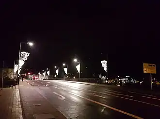 ![]() Blick über die Tauberbrücke auf die Häuser rechts der Tauber, Dezember 2017