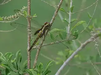 Das Tier erreicht eine Länge von 40 bis 44 Millimeter. Sein Brustkorb (Thorax) ist rötlich braun und weist zwei nicht leicht zu erkennende weiße Seitenstreifen auf. Der Hinterleib (Abdomen) der Libelle ist orange bis bräunlich mit einem dunklen Strich entlang der Rückenmitte. Die Hinterflügel sind zwischen 34 mm und 38 mm lang und besitzen ein braunes Band am Ansatz sowie einen winzigen braunen Fleck am Nodus. Die Basis des Hinterflügels ist im Gegensatz zur Macrodiplax marcella nicht verbreitert, was eine Unterscheidung der sonst in Aussehen und Verhalten sehr ähnlichen Arten erlaubt.[1]