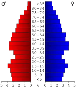 Auf das gesamte County bezogen setzte sich die Bevölkerung zusammen aus 23,4 Prozent Einwohnern unter 18 Jahren, 10,4 Prozent zwischen 18 und 24 Jahren, 26,9 Prozent zwischen 25 und 44 Jahren, 24,1 Prozent zwischen 45 und 64 Jahren und 15,2 Prozent waren 65 Jahre alt oder darüber. Das Durchschnittsalter betrug 38 Jahre. Auf 100 weibliche Personen kamen 92,7 männliche Personen. Auf 100 Frauen im Alter von 18 Jahren alt oder darüber kamen statistisch 88,7 Männer.