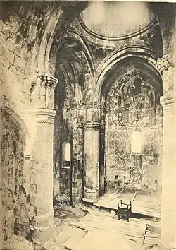 Die beiden Seitenschiffe unterschieden sich in der Breite und Ausgestaltung. An den Nordarm des älteren Baus wurde ein tonnenüberwölbter Raum mit einer Rundapsis angebaut, der je ein Fenster in der Nord- und Ostwand besaß und über eine Tür zum Kirchenraum zugänglich war. Eine weitere Tür in der westlichen Schmalseite führte in eine lichtlose langrechteckige Kammer, die heute fehlt. Der Nordarm maß außen 8,2 Meter in der Länge und etwa 11 Meter in der Breite; der Südarm war mit 7,4 Metern Länge und etwa 10,5 Metern Breite etwas kleiner. Der Hauptraum im Westen ist völlig zerstört, laut Marr soll er 10,65 Meter lang gewesen sein. Im Westen war eine Empore über zwei Bögen eingebaut, die auf einem Mittelpfeiler und Pilastern an der Nord- und Südwand ruhte. Eine solche, für Frauen reservierte Empore war bei Kirchen ab dem 10. Jahrhundert üblich und findet sich auch in Dörtkilise, Barhal und Öşk Vank, kommt jedoch nach dem 13. Jahrhundert nicht mehr vor.