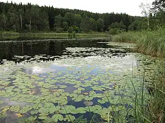 Der ganze Ufersaum ist naturbelassen. Zum Großteil wird er von einem Schneidenried eingenommen, daneben gibt es Teichbinse, Igelkolben, Sumpffarn und Sumpf-Haarstrang. An Wasserpflanzen kommt neben Laichkraut und Seerose auch die seltenere Kleine Teichrose vor. Das Hinterland um den See wird von flachmoorartigen Beständen von Carex davalliana, Rostroter Kopfbinse (Schoenus ferrugineus) und Zittergras gebildet. Alle drei heimischen Arten des Sonnentau sind hier recht häufig (Drosera anglica, Drosera rotundifolia, Drosera intermedia).