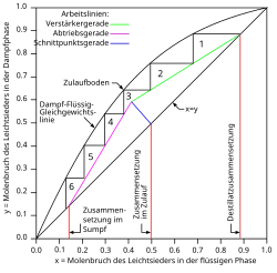 Die bei weitem am häufigsten verwendete Methode zur Stofftrennung ist die Rektifikation, die einstufig als Destillation, oder aber mehrstufig in kontinuierlich oder diskontinuierlich arbeitenden Verfahren durchgeführt werden kann. Rektifikationskolonnen wurden früher häufig nach dem graphischen McCabe-Thiele-Verfahren ausgelegt.