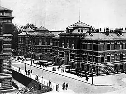 Die Polytechnische Schule zu Darmstadt wurde am 10. Oktober 1877 durch Verleihung des Titels Technische Hochschule zu Darmstadt von Ludwig IV., Großherzog von Hessen und bei Rhein, in den Universitätsstatus erhoben. Damit erfolgte auch eine Änderung der Aufnahmebedingungen, die nunmehr das Abitur voraussetzten. 1899 wurde der TH Darmstadt von Großherzog Ernst Ludwig das Promotionsrecht zuerkannt.[17] Um den Universitätsrang zu verdeutlichen, änderte die Technische Hochschule am 1. Oktober 1997 ihren Namen in Technische Universität (TU Darmstadt).[3]