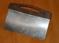 Teigschaber ohne Stiel nennt man auch Teigkarte, Backhorn, Hörnchen (beide Bezeichnungen im Backhandwerk) oder Schlesinger (im Fleischereihandwerk, nach dem Schlesinger-Knochen, dem Schulterblattfortsatz des Kalbes. Dieser Knochen wurde in früheren Zeiten als Teigschaber verwendet). Ein Teigschaber besteht aus einer flachen, halbrunden oder rechteckigen Platte mit zwei abgerundeten Ecken. Als Material sind Kunststoff und rostfreier Stahl verbreitet. Metallene Teigschaber sind meist mit einem Handgriff aus Plastik oder Holz ausgestattet.