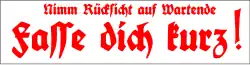 - Die Aufforderung „Fasse dich kurz!“ war bis in die 1970er Jahre an öffentlichen Fernsprechern angebracht.