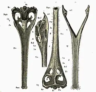- ↑ a b c Jouve, S. (2009). The skull of Teleosaurus cadomensis (Crocodylomorpha; Thalattosuchia), and phylogenetic analysis of Thalattosuchia. Journal of Vertebrate Paleontology, 29(1), 88–102. doi:10.1080/02724634.2009.1001