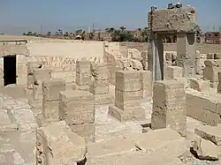 - ↑ Klaus-Peter Kuhlmann: Archäologische Forschungen im Raum von Achmim. Der Tempel Ramses II. in Abvdos. Zweiter Bericht über die Neuaufnahme. In: Mitteilungen des Deutschen Archäologischen Instituts Abteilung Kairo. Band 38, Mainz 1982, Tafel 102, oben.