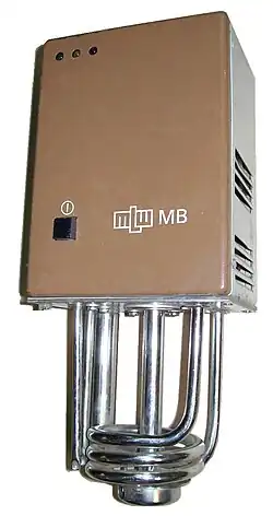 - Selbstregelnde elektrische Heizelemente bestehen lediglich aus einem Werkstoff mit extrem temperaturabhängigem elektrischem Widerstand (PTC-Keramik) und vereinen in sich alle Bestandteile eines Regelkreises – die Sollgröße ist ein fester Materialparameter. Typisch für Kleingeräte mit weit gespreizter Betriebsspannung (typisch 110–240 oder 12–24 Volt), wie Heißklebepistole, Haarglätter, Haartrockner, Wasserkocher.