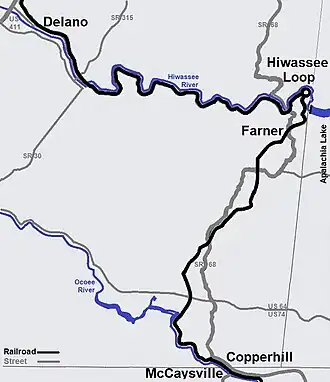 - ↑ Hiwassee Route der Tennessee Valley Railroad, auf openrailwaymap.org. Aufgerufen am 21. April 2024.