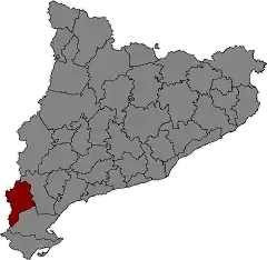 Lage der Comarca und des Weinbaugebiets Terra Alta