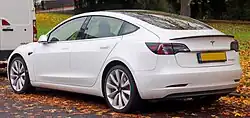 Das Model 3 ist eine batterieelektrisch angetriebene Limousine des US-amerikanischen Herstellers Tesla. Es wurde als Prototyp Ende März 2016 vorgestellt und wird seit Juli 2017 produziert, seit Februar 2019 ist es auch in Europa erhältlich.[5][6] Mit rund 1,8 Millionen ausgelieferten Fahrzeugen bis Ende 2022 ist es das meistverkaufte Elektroauto der Welt. Dieser Titel wurde bis etwa Mitte 2019 vom Nissan Leaf mit 450.000 Einheiten[7] getragen.[8] Das Model 3 wurde bis zur Modellpflege im September 2023 weltweit zwei Millionen Mal verkauft.[9]