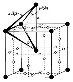 Viele Kristalle haben Strukturen, in denen die Atome lokal ein Tetraeder bilden. Zu diesen Strukturtypen gehören unter anderem die dichtesten Kugelpackungen, also vor allem das kubisch flächenzentrierte Gitter und die hexagonal dichteste Kugelpackung. Dichteste Kugelpackungen, zu denen das kubisch raumzentrierte Gitter nicht gehört, haben doppelt so viele Tetraederlücken wie Kugeln.[1] So hat ein kubisch-flächenzentriertes Gitter 8 · 1/8 + 6 · 1/2 = 4 ganze Atome pro Elementarzelle und 2 · 4 = 8 Tetraederlücken.