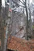 Der Teufelstein-Berg ist 547 m hoch und bis auf eine kleine Wiese im Gipfelbereich vollständig bewaldet. Er trägt nicht auf allen Karten einen Namen.[21] Sein Gipfel liegt im abgezäunten Naturschutzgebiet, ist bewaldet und nicht zugänglich.