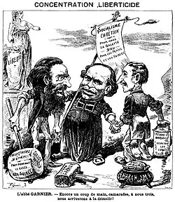 1888 wurde Abbé Garnier einer der Redakteure der katholischen Zeitung La Croix. Er folgte der Enzyklika Au milieu des sollicitudes (Inmitten der Fürsorge) und war einer der eifrigsten Befürworter der katholischen Bewegung für die Republik, während er im Anschluss an die Enzyklika Rerum novarum (Neue Dinge) eine Form des christlichen Sozialismus befürwortete. Diese progressiven Positionen wurden von einer deutlich antisemitischen Rhetorik begleitet. Nachdem er 1891 die l’Action sociale catholique (Werk der Katholischen Sozialaktion) geleitet hatte, leitete er danach die Ligue de l’Évangile (Liga des Evangeliums).