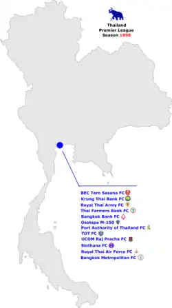 Die Thailand Premier League 1998 bestand aus 12 Mannschaften. Die Liga war zu diesem Zeitpunkt auch als Caltex Premier League bekannt.