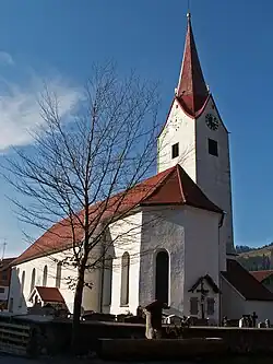 Die katholische Pfarrkirche St. Johannes Baptist wurde im Kern um 1500 erbaut. Es ist ein Saalbau mit eingezogenem Chor und nördlichem Turm mit Spitzhelm. Im Jahr 1790 wurde sie erweitert. Außerhalb der Kirche befindet sich ein Friedhof, der von einer Mauer umschlossen wird. Das 1727 errichtete Pfarrhaus Am Pfarrhof 1 ist, wie die Kirche, ein geschütztes Baudenkmal.