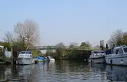 Die erste Holzbrücke über die Themse am Hampton Court Palace wurde 1753 eröffnet.[3] Für die Brücke musste eine Maut bezahlt werden und bis mindestens 1911 gab es eine Fähre am Swann Inn nahe den Inseln, die weniger Geld verlangte als die Brücke.[1][4]