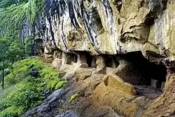 Das Kloster besteht aus 23 Felshöhlen, unter denen die Wohnhöhle (vihara) Nr. 7 besonders hervorzuheben ist, denn sie zeigt mehrere bogenförmige Blendbögen (chandrasalas) über den Zelleneingängen und den Wandnischen dazwischen; außerdem finden sich mehrere jali-Fenster. In der Mitte der Decke ist eine Rosette aus dem Felsgestein herausgearbeitet. In einer weiteren Höhle stehen mehrere Votivstupas.