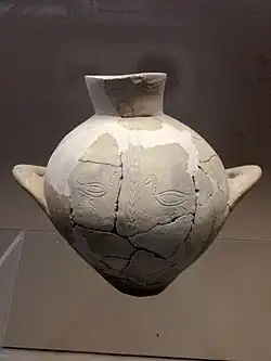 Die materielle Kultur umfasst Keramik mit dunkler Oberfläche, die häufig mit eingeritzten Motiven oder mit Schnurabdrücken verziert ist, die Girlanden bilden. Charakteristisch sind die großen Becken mit hohen Trompetenfüßen, Becher, Schalen und Tassen mit gegabelten Griffen.
