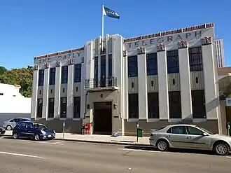 1933 wurde das dritte Gebäude des Daily Telegraph auf der Tennyson Street in Napier errichtet.[3] Das Gebäude, das am 21. September 1989 in die Kategorie 1 des New Zealand Historic Places Trust für besondere historische Gebäude aufgenommen wurde, wird heute gut erhalten von einem Immobilienunternehmen als Bürogebäude genutzt.