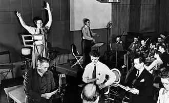 | 17 | 30. Oktober 1938 | „The War of the Worlds (Hörspiel)“ von H. G. Wells Besetzung: Orson Welles (Produzent, Regisseur, Moderator und in der Rolle als Professor Richard Pierson), Dan Seymour (Sprecher), Paul Stewart (Koproduzent und in der Rolle des Studioansagers und des dritten Studioansagers), Frank Readick (als Reporter Carl Phillips und Funker 2X2L), Kenny Delmar (als Polizist auf der Farm, Captain Lansing, Innenminister und Funker aus Bayonne), Ray Collins (als Farmer Wilmuth, Harry McDonald und Radioansager), Carl Frank (als zweiter Studioansager und faschistischer Fremder), Richard Wilson (als Brigadegeneral Montgomery Smith, Officer der 22. Feldartillerie und Langham Field), William Alland (als Raumsprecher und Feldartillerieschütze), Stefan Schnabel (als Feldartilleriebeobachter), William Herz (als Newark Funker und Funker 8X3R), Howard Smith (als Bomber Lt. Voght), Bernard Herrmann (Komponist und Dirigent), John Houseman (Produzent und Drehbuchautor), Howard Koch (Adaptor), Davidson Taylor (Produktionsleiter), Ora Nichols (Soundeffekte), Ray Kremer (Soundeffekte), Jim Rogan (Soundeffekte), John Dietz (Toningenieur)[2][11] |