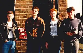 „Bei Factory Records mitzumachen war eine tolle Erfahrung. Wir hatten einen Raum im obersten Stockwerk des Boardwalk Gebäudes, gleich nebenan, wo die Band James probte. Die Happy Mondays probten ebenfalls dort, zusammen mit einigen anderen Factory-Bands wie A Certain Ratio und Kalima. Wir sind mit Joy Division und New Order aufgewachsen, und Tony Wilson war eine inspirierende Persönlichkeit. Wir haben uns wohl gefühlt, weil alles um uns herum völlig unstrukturiert und unbelastet war.“