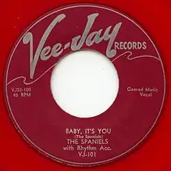 Nur wenig später benannte sich die Band in The Spaniels um, bekam einen Plattenvertrag bei dem damals noch völlig unbekannten Label Vee Jay Records und zog schließlich nach Chicago. Mitte 1953 nahmen die fünf Sänger dann Baby It’s You auf, das im September die Top 10 der R&B-Charts knackte. Im Folgejahr hatte die Band mit Goodnight, Sweetheart, Goodnight dann ihren größten Erfolg. Der Song machte einen Platz 5 in den R&B-Charts, eine Coverversion der weißen Pop-Band The McGuire Sisters kam nur wenig später in die Top 10 der Pop-Charts.