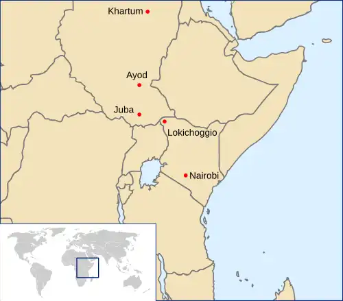 - ↑ Kim Murphy: A ‘Silent’ Famine Spreads Death in Southern Sudan : Africa: Bitter civil war, homelessness and disease in the remote area bring misery rivaling that of Somalia. In: Los Angeles Times. 10. April 1993 (englisch, latimes.com).
