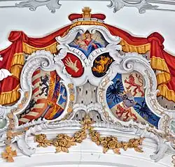 Allianzwappen der Gräfin am rechten Seitenaltar der kath. Kirche St. Pankratius, Schwetzingen -