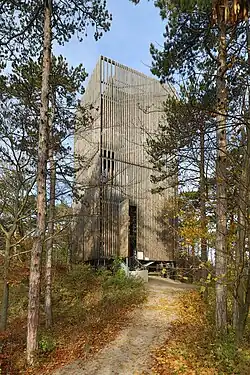 Der erste 1884 errichtete Turm geht auf Theresia Göschl zurück, die den Bau finanzierte. Diese 16 Meter hohe Warte wurde 1912 und 1980 erneuert. Im Herbst 2014 wurde die 34 Jahre alte Holzkonstruktion wegen umfangreicher Holzschäden aus Sicherheitsgründen abgetragen, eine Wiedererrichtung wurde in der Gemeinderatssitzung vom 24. März 2015 beschlossen.[1]