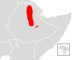 - Der Arsi-Dschelada, eine eventuelle dritte, bisher unbeschriebene Unterart des Dscheladas, kommt östlich des Großen Afrikanischen Grabenbruchs in der ehemaligen Provinz Arsi vor.[5] Dieser Dschelada hat eine helleres, leicht golden schimmerndes Fell und lebt in trockeneren, tiefer gelegenen Regionen, in Höhen von 1800 bis 2400 Metern.[1] Er ist möglicherweise mit Theropithecus senes identisch, der 1857 durch den französischen Zoologen Jacques Pucheran beschrieben wurde, heute aber als Synonym von Theropithecus gelada gilt.[5]