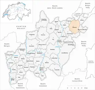 Am 1. Januar 2013 fusionierte sie mit den Gemeinden Chanéaz, Chapelle-sur-Moudon, Correvon, Denezy, Martherenges, Neyruz-sur-Moudon, Peyres-Possens und Saint-Cierges zur neuen Gemeinde Montanaire.