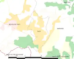 Umgeben wird Thizy von einer Nachbargemeinde und von zwei Communes déléguées von Thizy-les-Bourgs:
