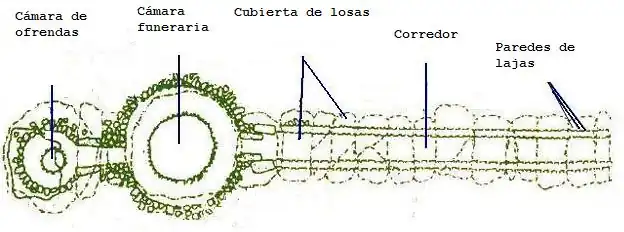 Die anschließende größere Kammer ist kreisförmig und hat einen Durchmesser von 5,20 Metern bei einer Höhe von 3,75 Metern.[3] Sie ist in gleicher Weise errichtet wie der Gang – hier ist jedoch eine deutlich nach innen vorkragende Bauweise in Form einer Kragkuppel zu beobachten, die eine falsche Kuppel bildet und oben von einer Megalithplatte abgedeckt wird. Die Böden des Ganges und der Hauptkammer bestehen aus gestampfter Erde. Eine dem Zugang gegenüberliegende, dabei um 10 Grad aus der Längsachse des Grabes nach Norden versetzte Öffnung in der Wand der größeren Kammer führt in eine mit einem Durchmesser von nur 2,34 Metern und einer Höhe von 2,40 Metern deutlich kleinere und um etwa 70 Zentimeter erhöhte zweiten Kammer.[4] Hier findet sich eine Art „Altarstein“; darüber hinaus ist der Boden des kleinen Raumes mit Steinplatten ausgelegt.