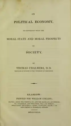 1823 übernahm Chalmers die Professur für Moralphilosophie an der Universität St Andrews, wo er sich überwiegend mit nationalökonomischen Fragen beschäftigte. 1828 wechselte er auf eine Professur für Theologie an der Universität Edinburgh. Hier wurde er zum Führer der „evangelikalen“ Fraktion in der General Assembly, dem gesetzgebenden Gremium der Church of Scotland, und amtierte 1832 als Moderator. Sein besonderes Engagement galt weiterhin der Präsenz der Kirche in den industriellen Zentren, und so konnten zwischen 1834 und 1841 220 neue Kirchen gebaut werden. 1834 wurde er Mitglied der Royal Society of Edinburgh.