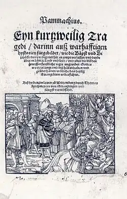 - Pammachius, 1538. (online Berlin 1891, Hrsg. Johannes Bolte und Erich Schmidt)