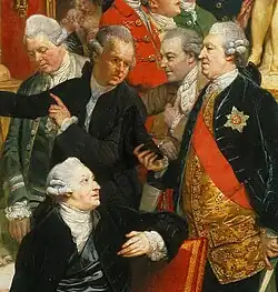 - ↑ Guardian. David Garrick in Italien von Patch beim Besuch eines Palazzo mit Horace Mann, dessen Porträt als Gesicht eines Bullen in einem Gemälde im Hintergrund auftaucht. Das Gemälde ist in der Exeter Art Gallery.