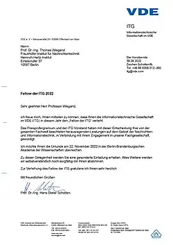 - ↑ Thomas Wiegand zum Mitglied der Leopoldina gewählt – Fraunhofer HHI. Abgerufen am 30. September 2022.