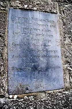 An der Außenmauer gibt es eine Tafel, die an Yeats' Aufenthalt erinnert:[27]