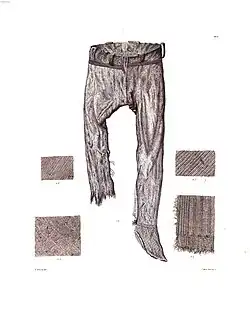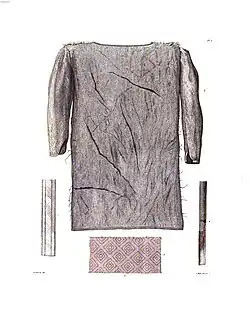 Manchettenförmige Hilze eines Schwertgriffs aus der ersten Hälfte des 3. Jahrhunderts, das mit zwei Randstücken gefertigt ist, davon trägt eins eine Runenbeschriftung. Das spitzovale Beschlagteil (Höhe: 2,3 cm) zeigt vier quadratische obere und vier schmalere untere Felder, die durch Tremolierstiche voneinander getrennt sind. Im oberen Teil (Höhe: 1,3 cm) finden sich zwei aneinanderstoßende Felder mit runenähnlichen Zeichen bzw. stilisierten Swastiken. Der Beschlag gehört zu einem Prachtschwert, das einem Gefolgschaftsführer zugewiesen wird, der nach der Verbreitung des Typs vermutlich ein angreifendes Heer aus dem Raum zwischen Rhein und Elbe anführte. Das Stück befindet sich im Depot des Nationalmuseet in Kopenhagen (Inv.-Nr. 24 963).[3]