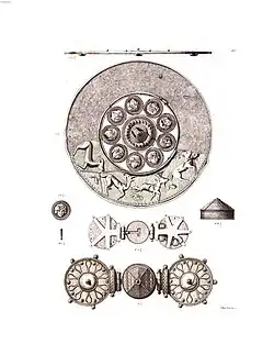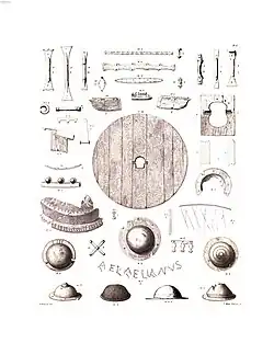 Hölzerne Rundschilde mit bronzenen Schildbuckeln und Randbeschlägen, 3. Jahrhundert -