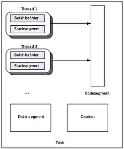- einen eigenen Stapel (Stack), jedoch meist im gemeinsamen Prozess-Adressraum.