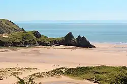 Three Cliffs Bay (auch Oxwich Bay genannt) liegt auf der Halbinsel Gower in Südwales, südlichöstlich der Ortschaft Penmaen sowie südwestlich von Pennard und Southgate.
