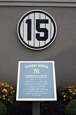 Kurz nach seinem Tode verkündete der Besitzer der Yankees, George Steinbrenner, dass Munsons Rückennummer 15 nicht mehr vergeben wird. Am 20. September 1980 gedachten die Yankees ein weiteres Mal an ihren verlorenen Captain mit der Einrichtung einer Plakette im Monument Park des Yankee Stadiums mit der Inschrift: Our captain and leader has not left us, today, tomorrow, this year, next... Our endeavors will reflect our love and admiration for him.