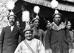 Neben Großbritannien und China versuchte auch die Sowjetunion, ihren Einfluss in Tibet auszuweiten und den britischen zurückzudrängen. Direkte Beziehung bestanden aber nicht, sowjetische Stellen versuchten vor allem durch Export subventionierter Textilien eine wirtschaftliche Annäherung zu erreichen. Traditionell bestanden auch weiterhin gute Beziehungen zur Mongolei, die vor allem auf gleichen Religionen und damit dem regelmäßigen Aufenthalt mongolischer Pilger und Geistlicher in Tibet zu verdanken waren; beide Länder betrachteten sich als natürliche Verbündete in ihren Unabhängigkeitsbestrebungen. Zuletzt versuchte auch das Japanische Kaiserreich, in Tibet einen Verbündeten im Rücken des Rivalen China zu finden, beschränkte seine Aktivitäten aber ebenfalls auf informelle Handelskontakte.[25] Der NS-Staat entsandte die Tibet-Expedition von 1938/39, konnte aber aufgrund britischen Drucks nur verdeckte Diplomatie betreiben.[26]