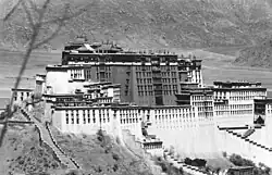Die ersten elektrischen Anlagen wurden 1927 installiert, als die tibetische Regierung entsprechendes Gerät aus Indien importierte und am Lhasa He ein kleines Wasserkraftwerk errichtete, um Potala und Norbulingka, einige Häuser der tibetischen Oberschicht und die Fabrikanlage Trabshi Lekhung mit elektrischem Licht zu versorgen.[43][44] Das Kraftwerk wurde später mangels Fachkräften jedoch stark vernachlässigt und konnte in den 1940er Jahren nur noch entweder Trabshi Lekhung oder Lhasa mit Energie versorgen. Erst 1947 wurde es von dem Österreicher Peter Aufschnaiter wieder instand gesetzt.[45]