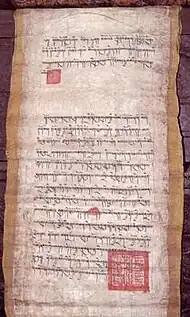 Urkunde des Königs Indrabodhi von Guge aus dem Jahre 1653: