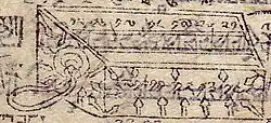Verifikation: Die Differenz zwischen der Größe des lokalen Messgerätes und dem Normalmaß beträgt 8 bre, 5 phul und 1⁄3 phul. Zur Probe wird mit M = 1 khal gerechnet. Dies ergibt 1•2⁄3•2⁄3 = 4⁄9 khal = 80⁄9 bre = 8 bre + 8⁄9 bre = 8 bre + 48⁄9 phul = 8 bre + 5 phul + 3⁄9 phul = 8 bre + 5 phul + 1⁄3 phul.