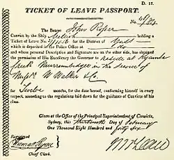 - ↑ Australia Convict Tickets Of Leave 1824-1874. Abgerufen am 23. September 2016.